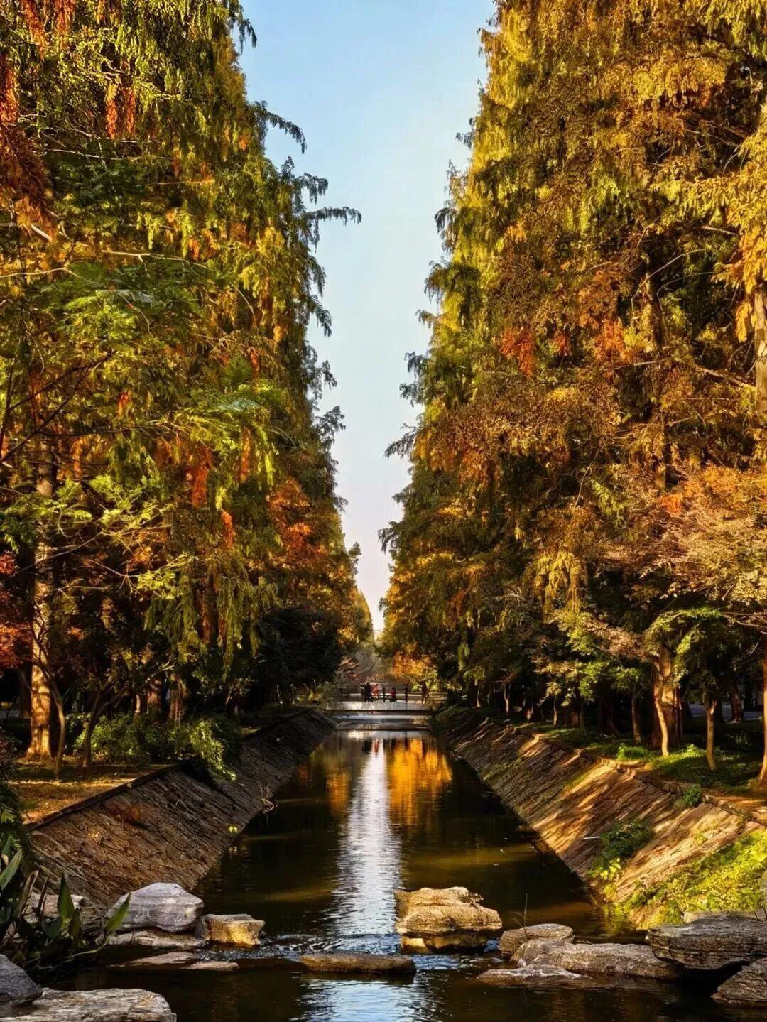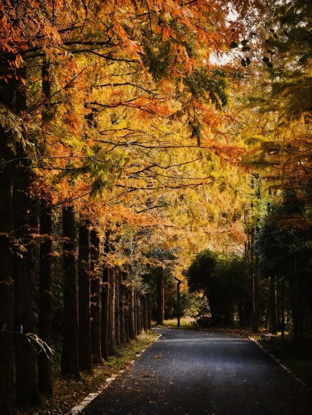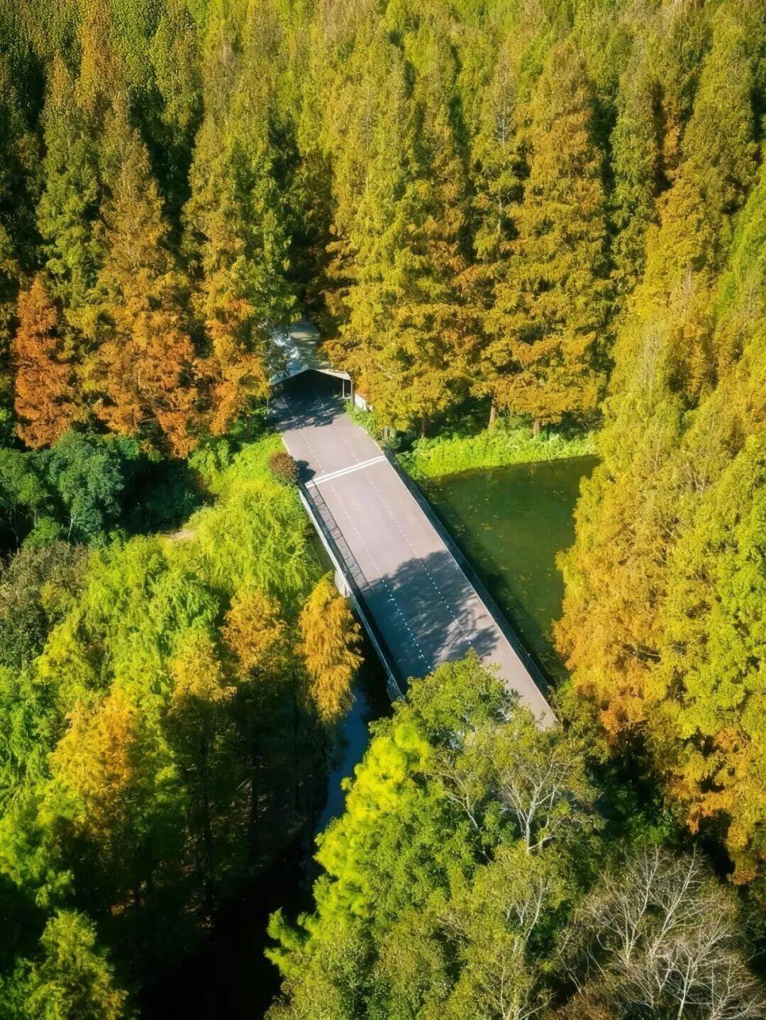 赏景正当时。11月下旬至12月上旬,这里迎来了最佳观赏期——水杉似火、银杏如金、红枫燃情,深红、明黄与墨绿交织成油画,湖面映着斑斓树影,随手拍都是冬日大片。