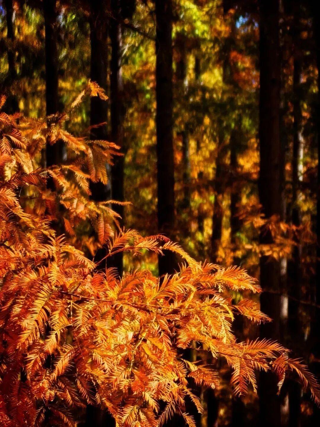 崇明的初冬,藏在东平国家森林公园的水杉林间。曾经满林的苍翠悄悄“上妆”,笔挺的水杉褪去旧色,枝叶从梢头开始渐染,层层叠叠晕出温柔的渐变。