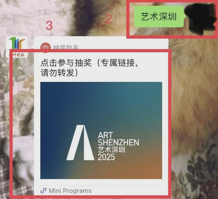 3、在对话框中输入关键词“艺术深圳”,获取链接参与抽奖