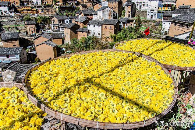“秋阳洒在黛瓦上,金黄的菊花像铺了一层碎金,土楼的黄墙在山雾里若隐若现,风一吹,花香混着草木的清香扑面而来……”近日,安徽黄山歙县深渡镇阳产村的一组晒秋照片,在社交平台强势刷屏,短短3天话题阅读量突破2亿,无数网友留言“这才是秋天该有的样子”“立刻订车票出发”。这座藏在海拔近800米高山上的古村落,因一场金丝皇菊的晾晒,再次走进大众视野,用最质朴的田园风光,治愈了无数都市人的疲惫。