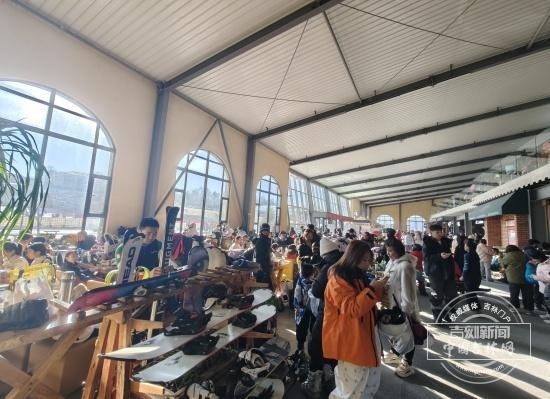 雪假第三天清晨,庙香山温泉滑雪度假区的大厅已热闹非凡。
