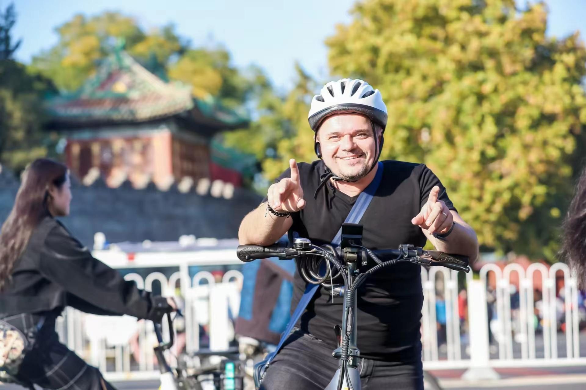 外国游客体验“骑行中轴”入境游产品 北京京骑文化供图