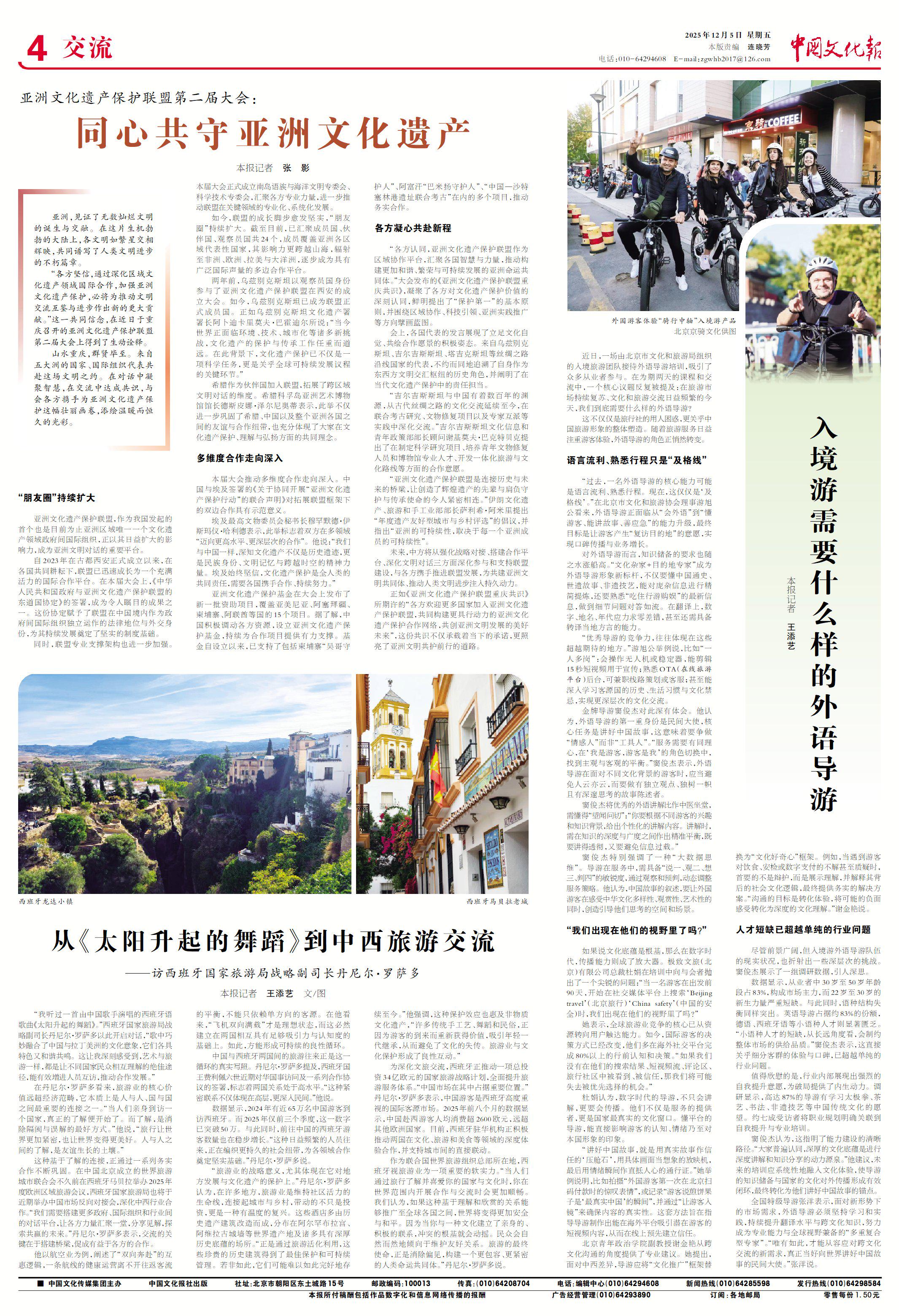 全国特级导游张洋表示,面对新形势下的市场需求,外语导游必须坚持学习和实践,持续提升翻译水平与跨文化知识,努力成为专业能力与全球视野兼备的“多重复合型专家”。“唯有如此,才能从容应对跨文化交流的新需求,真正当好向世界讲好中国故事的民间大使。”张洋说。