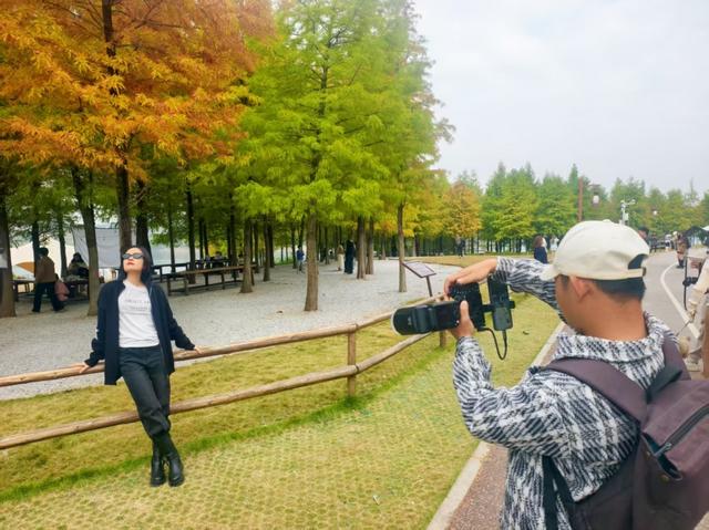 “现在正是落羽杉最美的季节,尤其是江边的美景,我们只需要一个平板,加上一个相机,身后的落羽杉是最真实的背景,无需加滤镜美颜,只需原相机直出就能拍出大片的既视感,这也是不少年轻人喜欢找我们约拍的原因。”星辰说道。