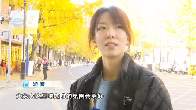 游客:“我从广西来的,这条街给我们的感觉就是很浪漫,虽然我来自广西,但是我所在的城市是没有银杏的,所以我是特意来这里看银杏和海鸥。整条街给人很舒适很放松的感觉,云南的咖啡本来就很出名,各种小粒咖啡、高山咖啡,都有尝过一些。”