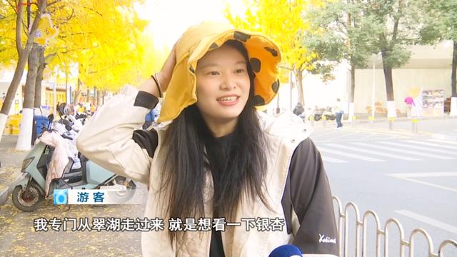 游客:“我专门从翠湖走过来,就是想看一下银杏。这个季节就是冬天特有的印象、记忆点,所以大家都应该来这逛逛、打打卡,留住秋天的这抹风景。整个景色和人文气息都很浓郁,大家来这里喝咖啡的氛围会更好。”