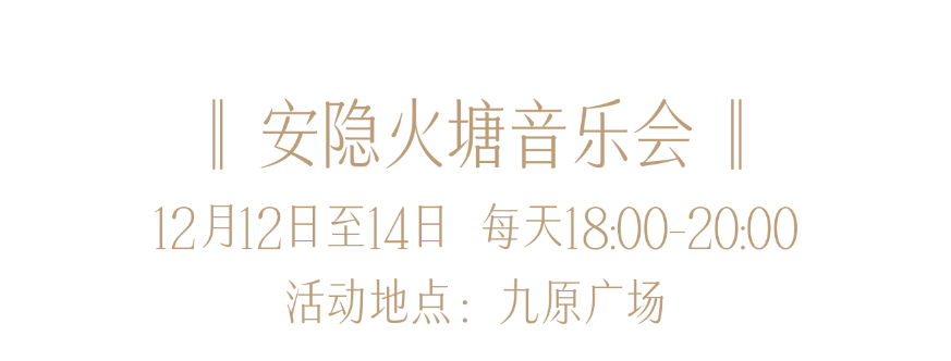 12月12日至14日,每天18:00-20:00,九原广场安隐火塘音乐会即将点燃冬日热情。