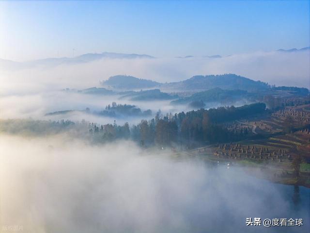 这份独特的景观,从来不是偶然降临的幸运,而是威宁高原地理与气候共同作用的必然,更是生态保护与自然馈赠的双向奔赴。威宁彝族回族苗族自治县位于贵州西北部,平均海拔2200米,是贵州海拔最高、面积最大的县,有着“贵州屋脊”的美誉。杨湾桥水库坐落于威宁双龙镇,处于乌蒙山系的褶皱地带,周围群山环绕,形成了相对封闭的小气候环境。每年12月,北方冷空气南下与高原暖湿气流在此交汇,昼夜温差加大,湖面蒸发的水汽遇冷凝结,便形成了连绵的云海。