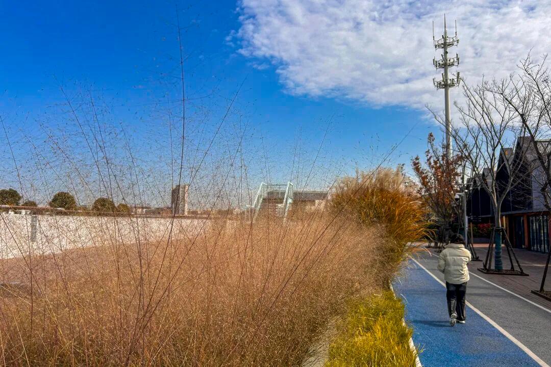 举起手机或相机,将墨西哥鼠尾草的紫、梧桐叶的黄、蕰藻浜水的蓝一同收进取景框,你就是这片秋日胜景的创作者。