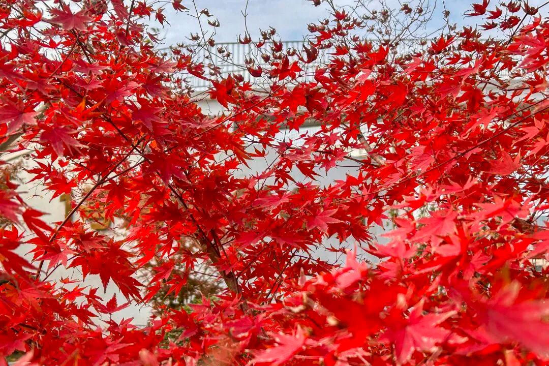 枫叶是公园里最热烈的宣言。找一处转角,看它们如何将半边天际染成赭红,逆光下,每片叶子都是燃烧的火焰。