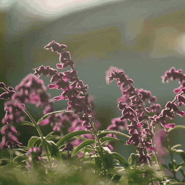 墨西哥鼠尾草摇曳着神秘的紫晕。让这些紫色花穗成为你的前景,背景是粼粼波光,轻松拍出高级感。