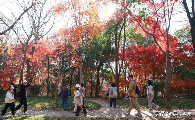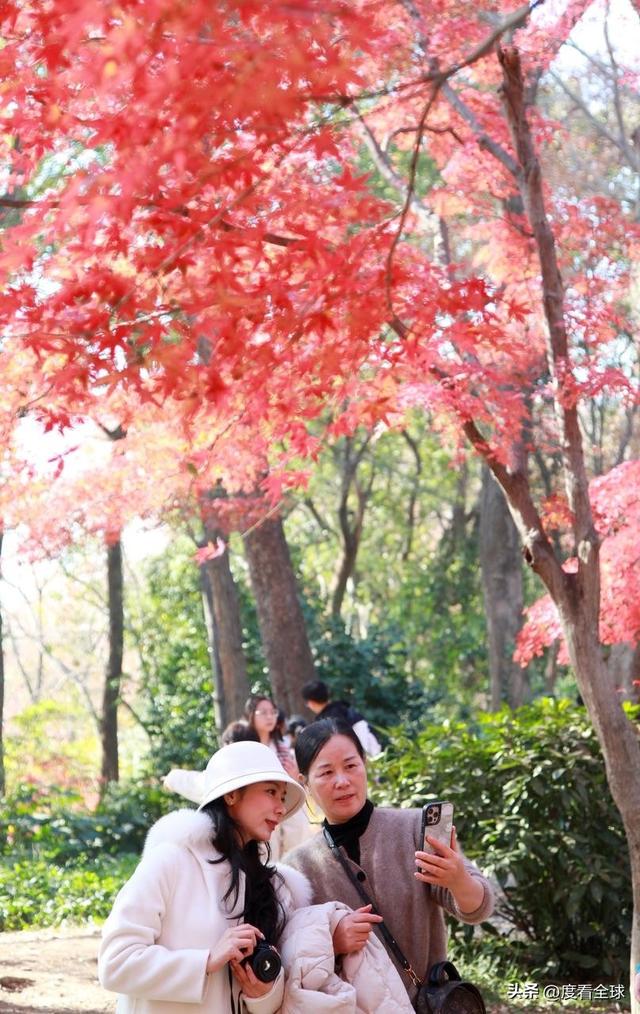 据介绍,红枫岗的最佳观赏期还将持续到 12 月中旬,这段时间里,只要天气晴好,都能欣赏到这样绚烂的红叶美景。随着气温进一步降低,部分叶片会慢慢飘落,但那铺在地上的红叶地毯,又会形成另一番独特的景致。北园的悬铃木和南园的落羽杉也在陆续变色,与红枫岗的红叶相互呼应,共同构成了一幅绚丽多彩的金陵冬景图。