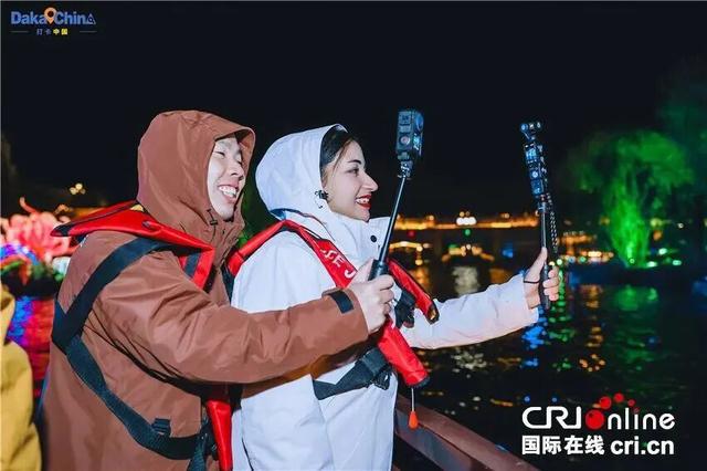 埃及网红努兰夫妇在拍摄汴河风景 图源:中央广电总台国际在线