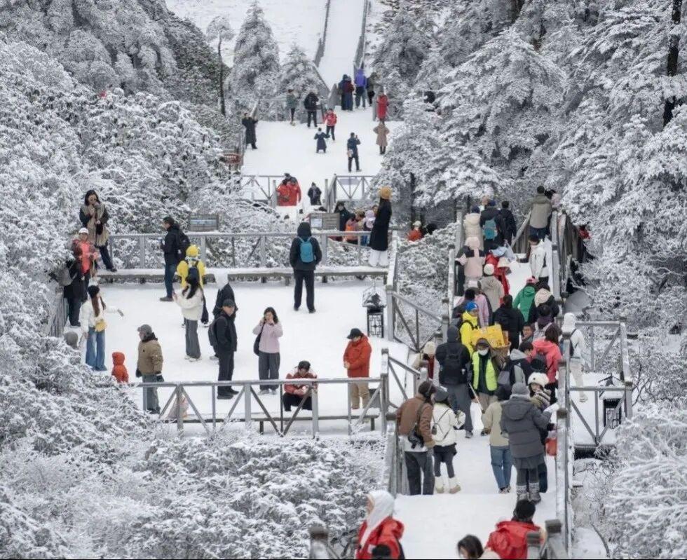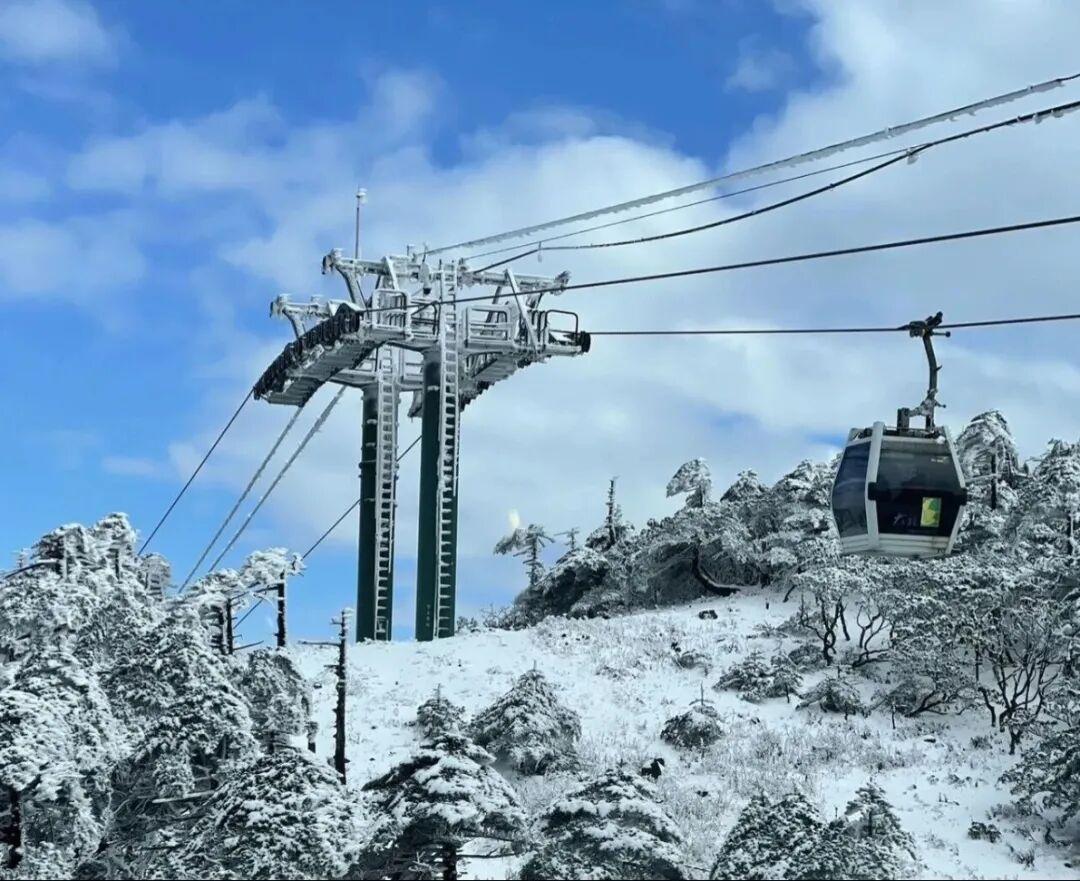 若遇上下雪,苍山便显露出它银装素裹的一面,山顶积雪与山间红杉相映成趣。乘洗马潭索道登顶,封闭吊厢穿越云雾,脚下是冰封的玉带云游路,远处洱海如镜,恍若置身仙境。若时间充裕,可徒步寂照庵附近的步道,听雪落松针的簌簌声,感受“苍山覆雪”的诗意。