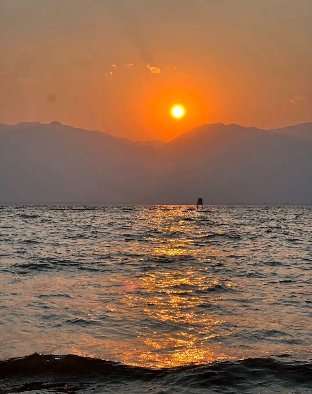 冬天的洱海日落,色彩最为奇幻。傍晚时分,找一处开阔的湖边静静坐下。看太阳从苍山背后缓缓下沉,将天空染成从橙黄、粉紫到靛蓝的渐变画卷,洱海水波粼粼,归于平静。当最后一缕金光消失,心中留下的是一整日的圆满与安宁。