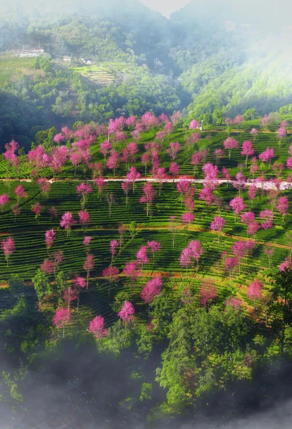 当大部分地方步入寒冬,大理无量山却提前迎来了春天。千亩茶园中,冬樱花如粉红色的云霞般绚烂绽放。漫步茶园,微风拂过,落下一场温柔的“樱花雨”。这反季的浪漫,是自然赠予大理冬日的独特诗篇。