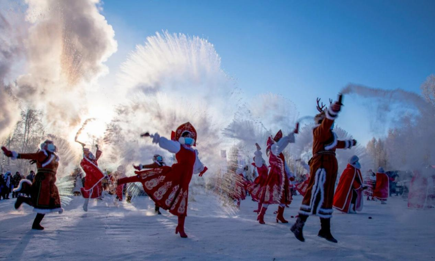 《雾凇节泼冰》李喜萍 摄