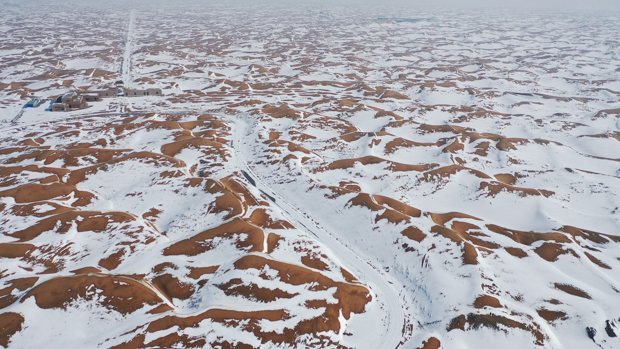 这是李海生拍摄的沙坡头沙漠雪景。(受访者供图)
