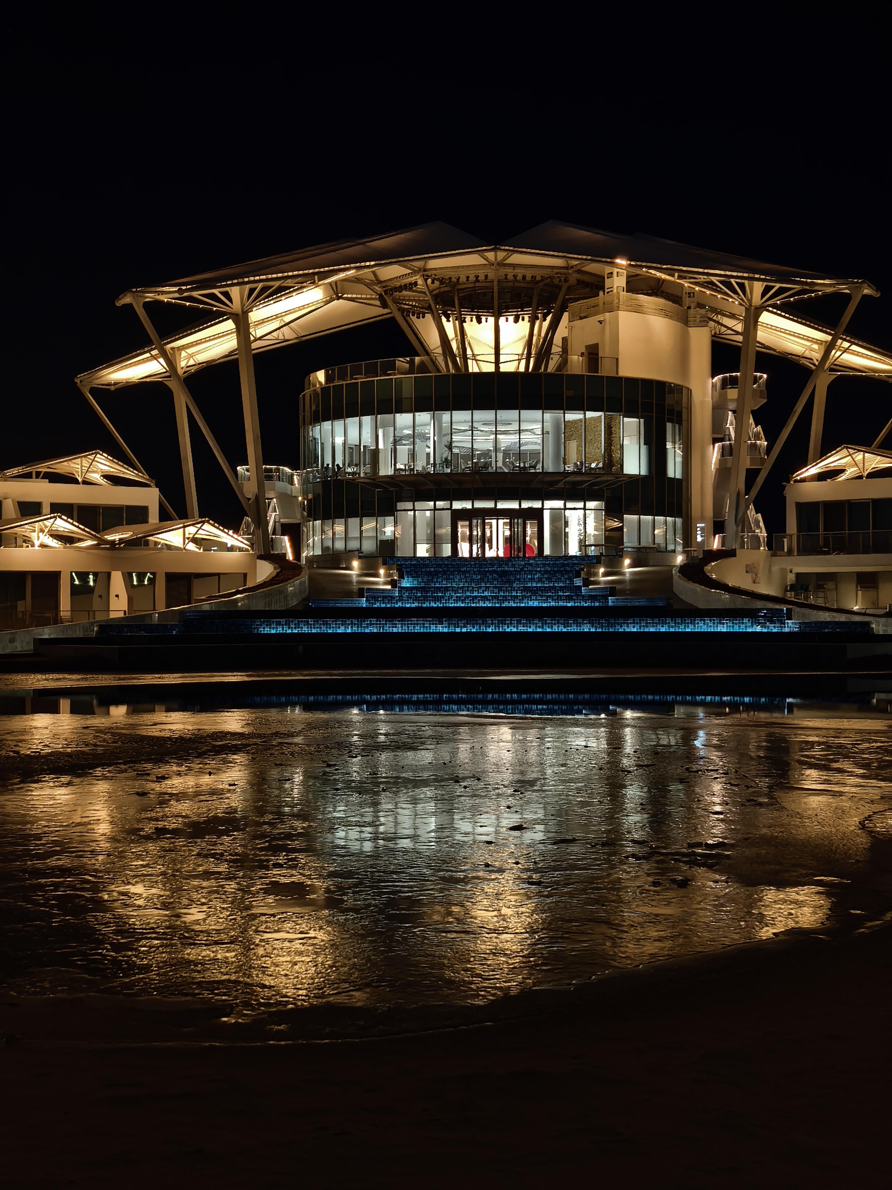 这是冬夜里的沙漠星星酒店主体建筑。新华社记者马思嘉 摄