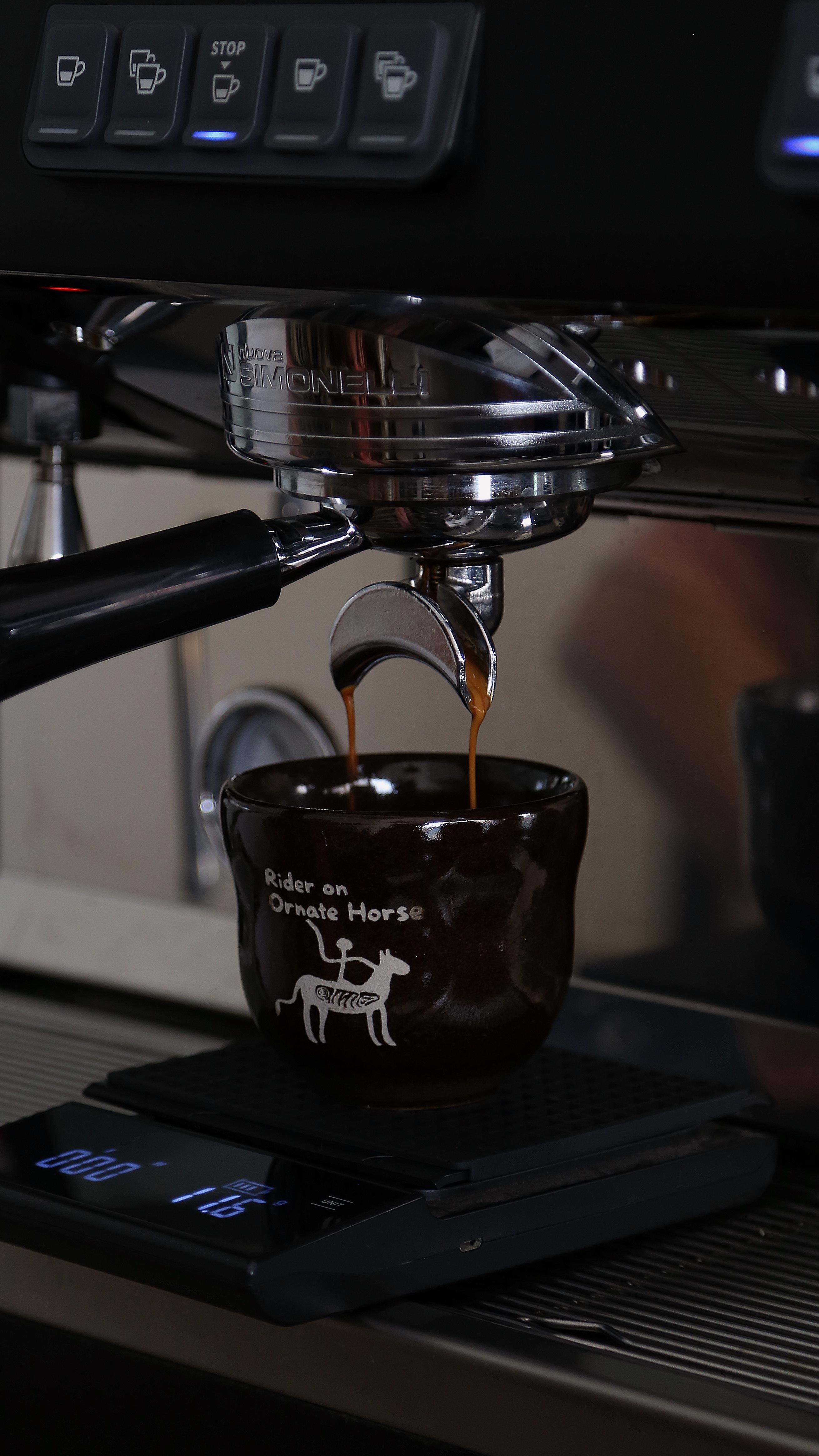 李海生咖啡店里的定制咖啡杯,融合了中卫非遗黄河古瓷烧造技艺与中卫大麦地岩画元素。(受访者供图)