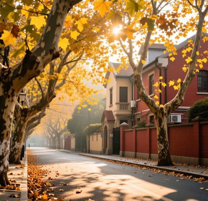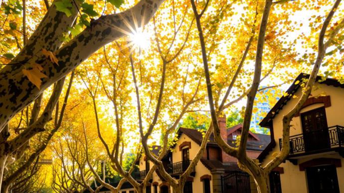 上海各处的秋色,也透着这份“熬”出的温柔与厚重。前些天某晚去外滩源集市,一排高大粗壮的鹅掌楸格外显眼。它们的叶片呈别致的马褂状,入秋后叶绿素慢慢褪去,叶黄素渐渐显现,整树叶子都被熬成了透亮的金色,仿佛在空中挂满了一件件“黄马褂”,配着暖融融的灯光与装饰,浑然一体,满目都是温润的金黄。近期我专程开车途经四平路,两旁的银杏树早已连成一条“金光大道”,1993年为迎接东亚运动会栽种的这批银杏,树干骨架优美,如今尽数披上了金衣。记得去年霜寒骤至,银杏叶来不及沉淀便卷边焦枯,我曾想找一片完整的叶子做书签,竟是空手而归。今年借助温和的天气慢慢熬,叶片整齐舒展,通体饱满,色泽像浓得化不开的黄颜料,美不胜收。我书屋的窗外有几棵高大的池杉,这时被熬成满树棕黄色,顺着树干生长的爬山虎则熬出了热烈的火红色,黄红相映,格外艳丽;金储广场沿街的榉树,叶片熬成了浓重的红,它们牢牢挂在枝头,展示着秋天的韧劲。