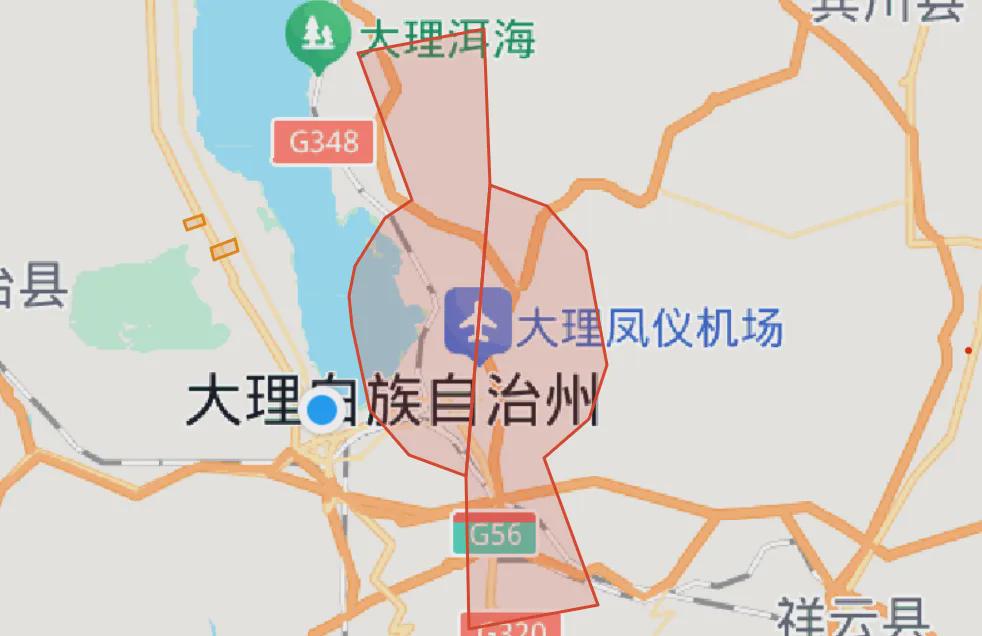 这里禁飞的“罪魁祸首”当然是旁边的大理凤仪机场,它简称为“大理机场”,正好位于凤仪镇与海东镇交界处的荒草坝,海拔高达2155米,西南距大理市区约13里,西距洱海湖岸仅3公里。参考相关信息:“2024年11月30日,大理机场迎来2024年第300万名旅客。这是继2023年实现年旅客吞吐量突破200万人次之后,大理机场又一次实现百万级人次新跨越的重要里程碑,成为继丽江、西双版纳机场之后,云南省内第3个年旅客量突破300万人次的支线机场”。
