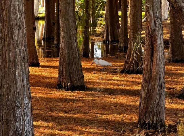 都沉醉在这红杉映鸥、水光共色的冬日盛景中