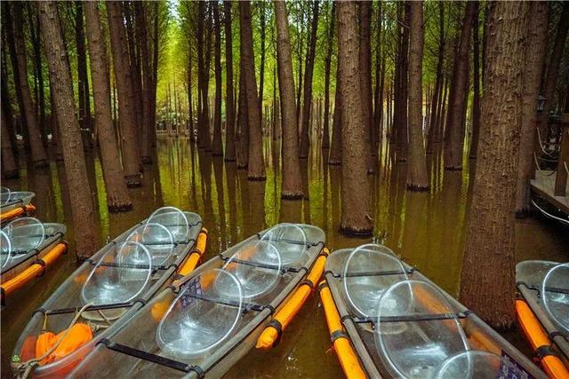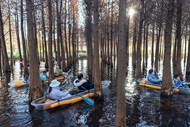 划船穿梭水杉林