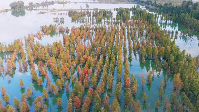 水杉披上红黄交织的华服