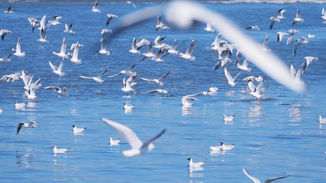 鸥群翅羽翻飞间