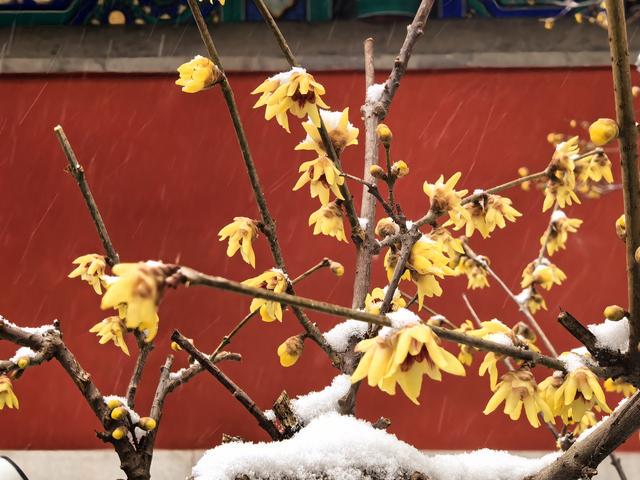 【环球网文旅报道】12月12日,北京迎来今冬初雪,位于国家植物园(北园)卧佛寺内的早花蜡梅品种正值花期,众多游客纷纷来此“踏雪寻梅”。