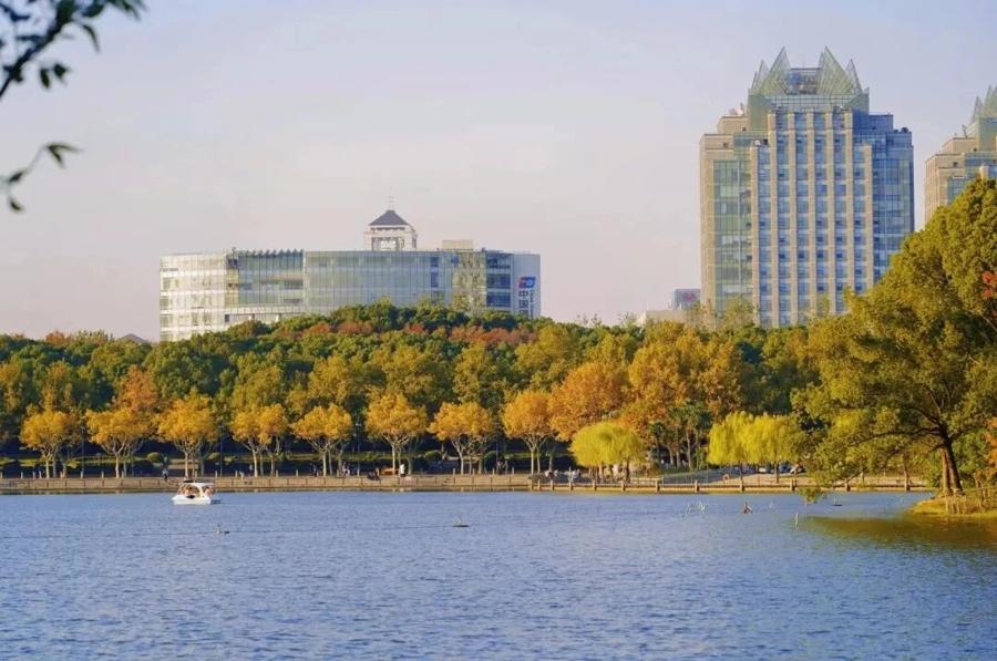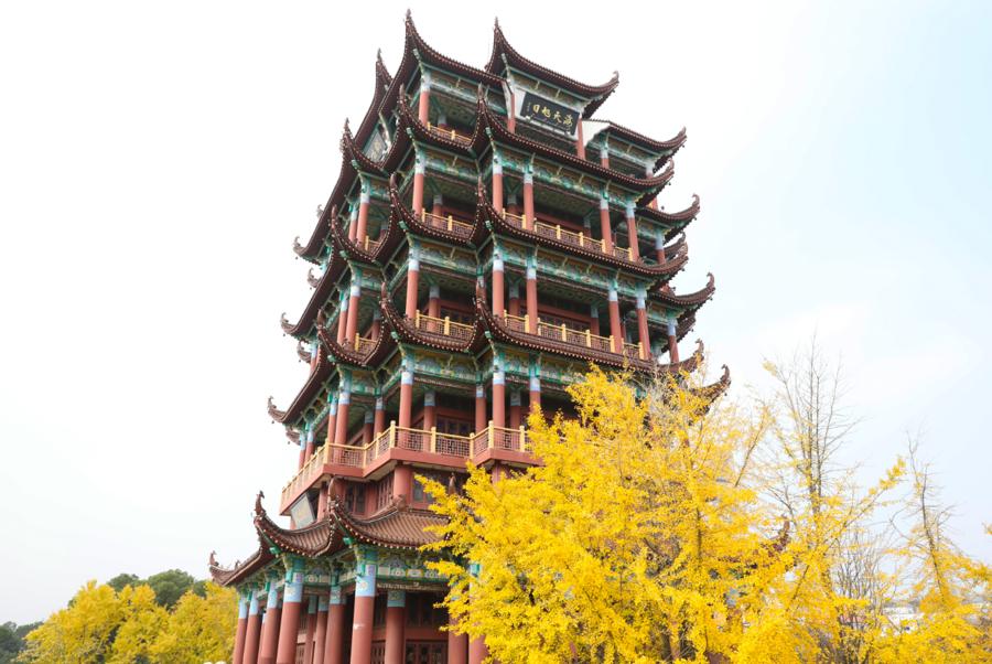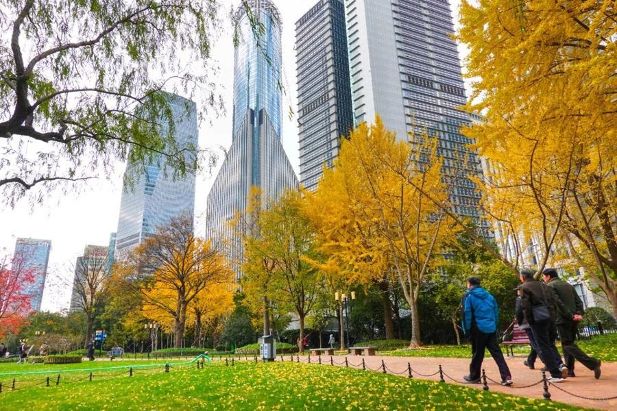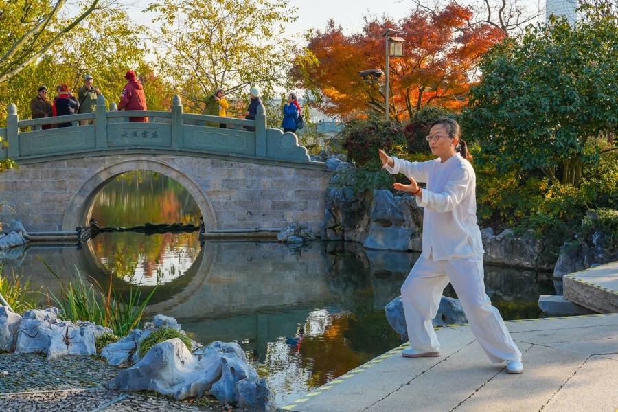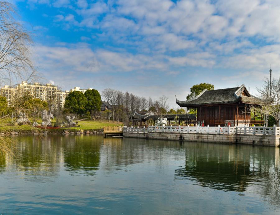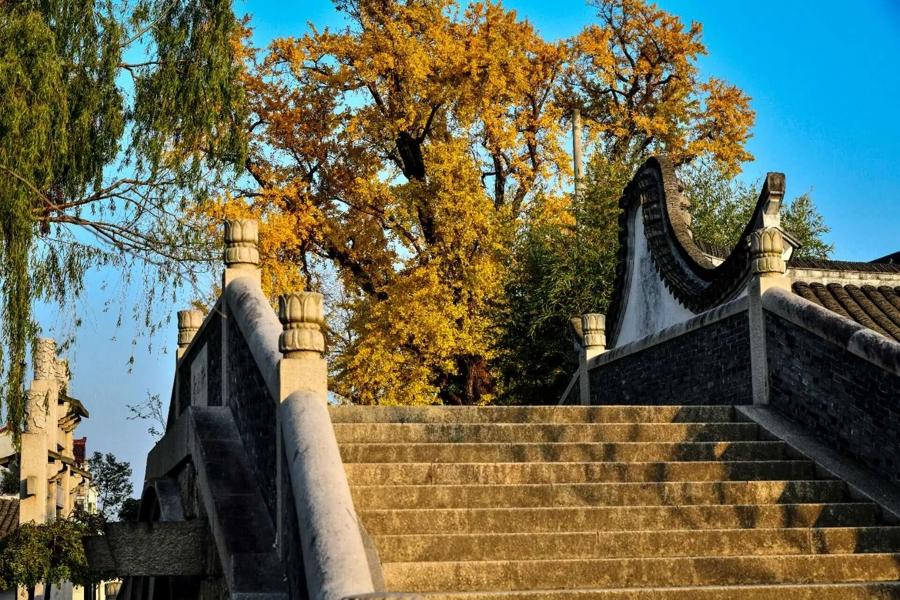 枫叶染霜、乌桕添红,金黄的落叶铺在青石小径上,与园中的亭台水景相映成趣。