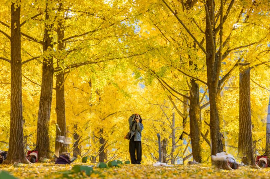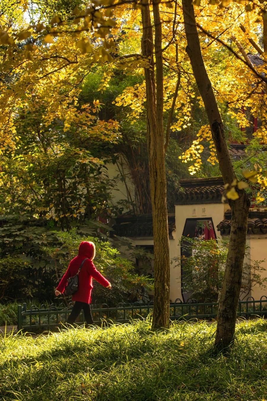 坐在长椅上听风扫落叶,静赏秋光漫过园林,氛围感直接拉满。