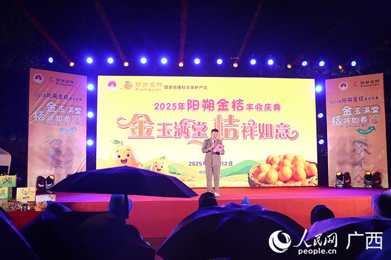 人民网阳朔12月13日电 金桔飘香庆丰年,吉祥如意满漓江。为进一步激活阳朔金桔产业的发展潜力与文化价值,12月12日晚,2025年“金玉满堂·桔祥如意”阳朔金桔丰收庆典活动在桂林市阳朔县西街口广场启幕。