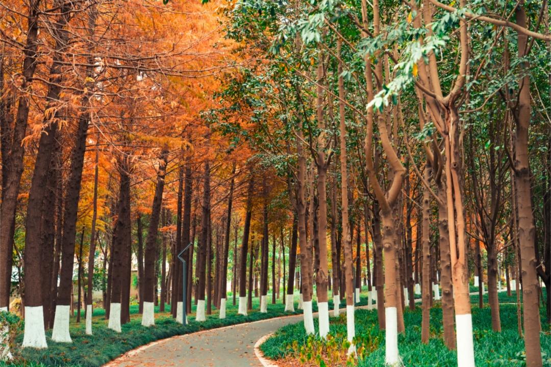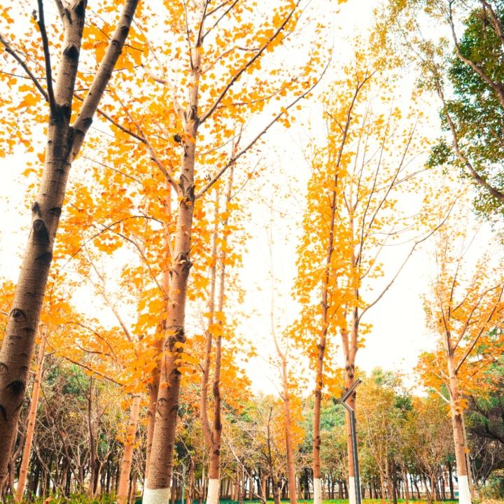 富长路绿地的树叶已然全然金黄,在枝头微微颤动,仿佛要倾尽最后的绚烂。