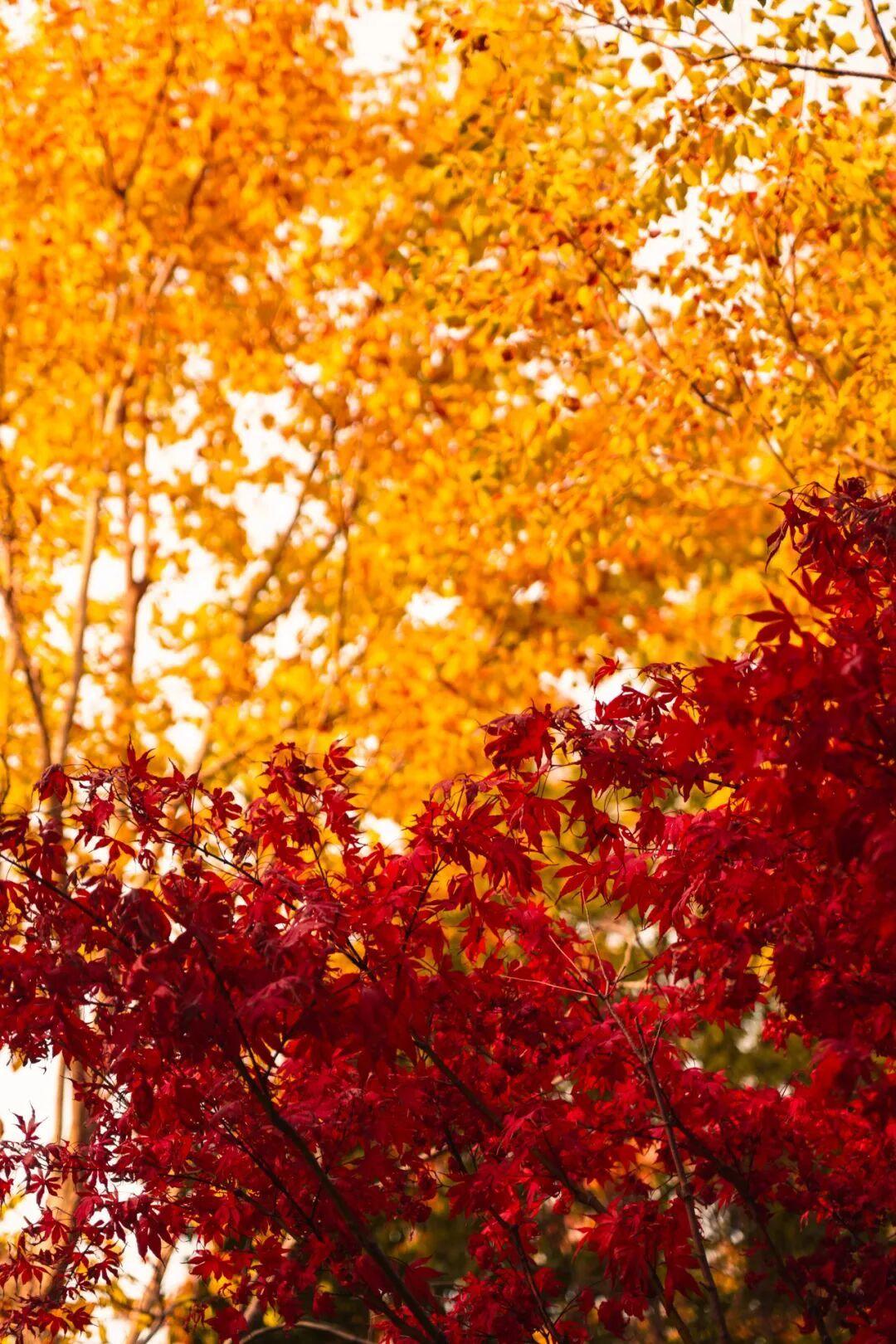 枫叶则燃得最艳,那红浓烈得近乎倔强,像一簇簇凝固的火焰,在灰蒙蒙的天色下格外醒目。