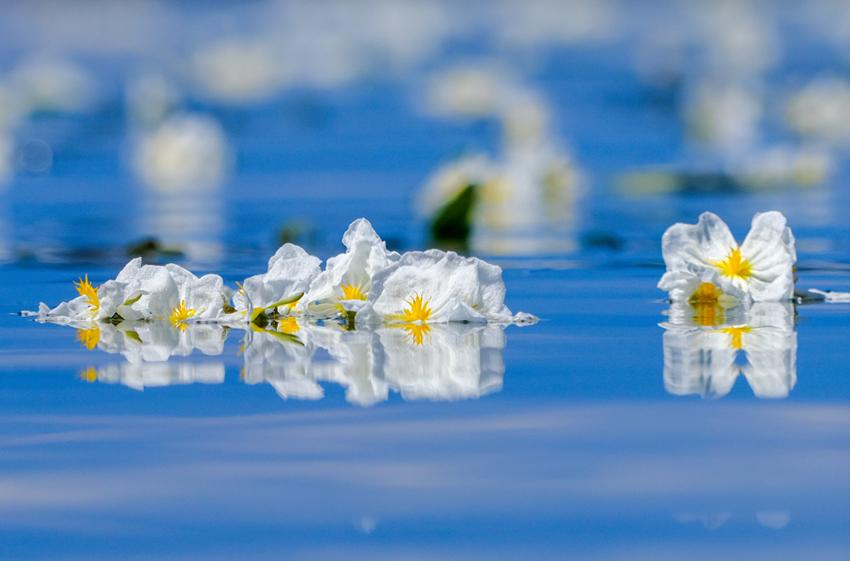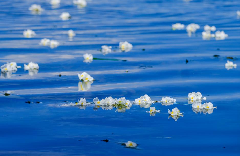 初冬,云南大理洱海碧波荡漾,一片片洁白的小花浮在水面,宛如繁星落入湖中。