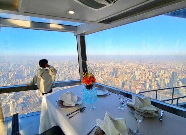 在“悬浮”于上海中心大厦121层的半透明玻璃空间“天空•魔盒”里,市民游客可以享用云端盛宴 新民晚报记者 周馨 摄