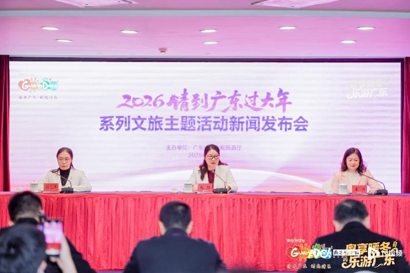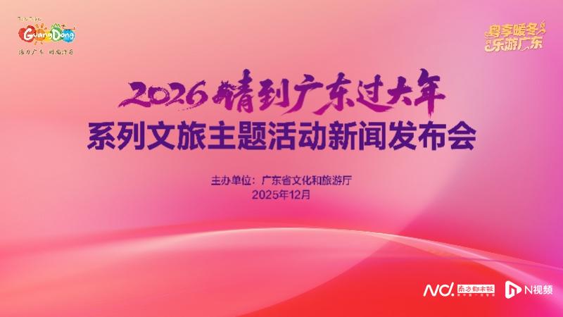 作为“粤享暖冬 乐游广东”消费季四大主题活动之一,“请到广东过大年”聚焦春节探亲游、欢聚游市场,主打民俗、文化和年货节主题,于2026年1月至3月举办,以掀起消费季的新一波热潮。发布会向海内外游客发出诚挚邀请,欢迎游客提前规划行程,前来沉浸式体验一场年味浓郁、活力十足、实惠丰厚的岭南新春文旅盛宴。