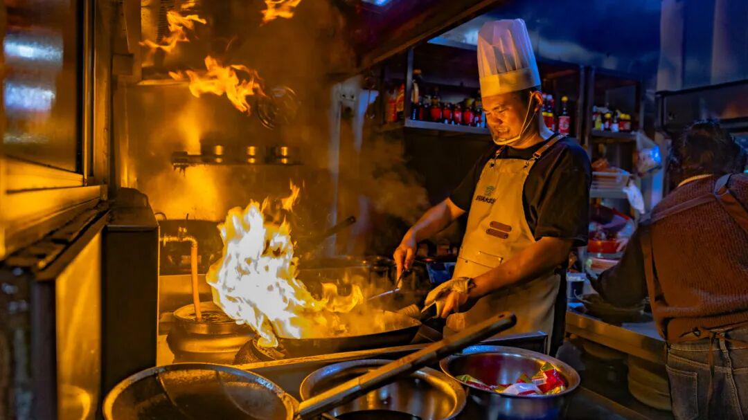 晚上9时,迎春街上几十家炖锅店座无虚席,牛肉粉丝锅、仔鸡板栗锅咕嘟冒泡,店家手中的点单笔就没停过。“最近每天生意非常火爆,营业额是平时的四五倍。”徐燚是迎春街上一家大排档的负责人。据其透露,这两天每天至少翻台80多桌。“这热闹劲儿,跟过年一样。”