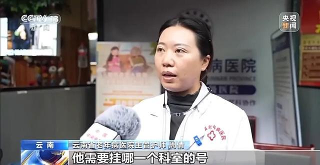 云南省老年病医院主管护师 周倩:“主要为这些老年人测血压、测血糖,还有提供健康咨询的服务,患者提供信息,他需要挂哪一个科室的号,然后我们帮他挂一下。”