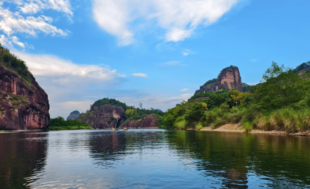 冬天的龙虎山,是被云雾偏爱的秘境。丹红色的山峰在晨雾中若隐若现,泸溪河水面如镜,把两岸的奇岩峭壁、苍劲古木一一倒映,乘一叶竹筏顺流而下,就像闯进了流动的水墨长卷。