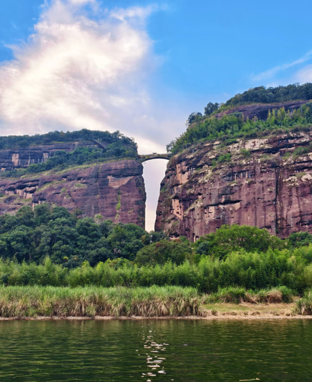 不同于夏日的热烈,冬日的丹霞少了几分喧嚣,多了些许静谧。河水清澈见底,空气里满是草木与水汽的清新,深吸一口,仿佛能把一整年的疲惫都洗去。新晋打卡点迎仙台是俯瞰全景的绝佳位置,站在这里远眺,云雾在丹霞群峰间流转,真有种“身临仙境寻仙踪”的错觉。