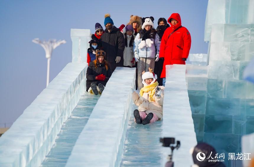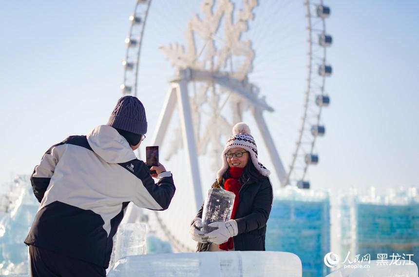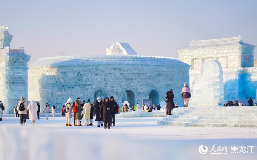 在主塔“冰灯启梦”、以哈尔滨火车站为蓝本的主形象大门、中华巴洛克风格的冰雪景观群前,游客们纷纷驻足拍照留念,将这份独有的冰雪艺术之美定格在镜头中。随着夜幕降临,全面升级的梦想大舞台演出也带来了精彩纷呈的歌舞表演,让游客真切感受到北国冰城的激情与火热。