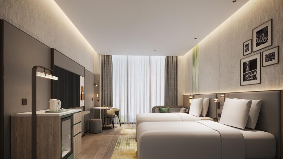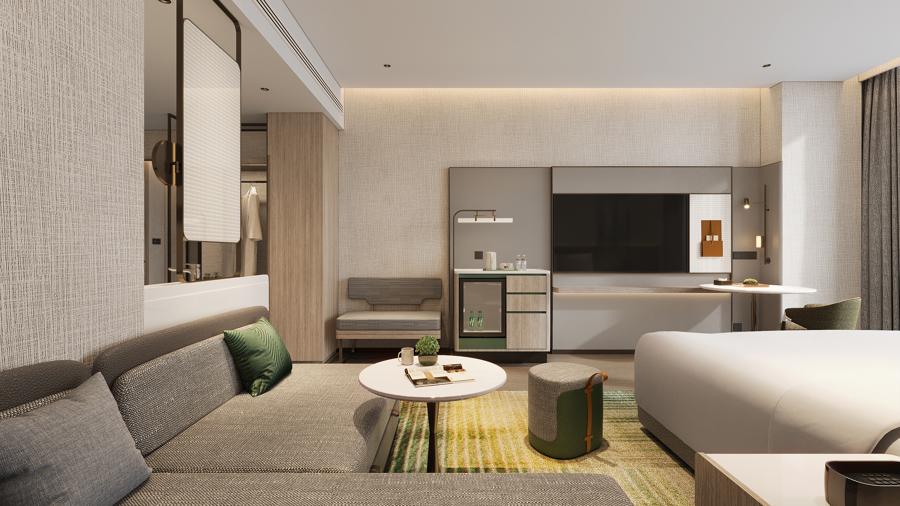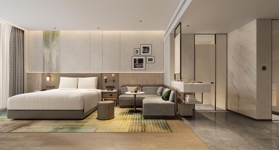 为了满足多元住客的需求,每间客房都配备了可延展的沙发床、双台盆、双行李架。硬件也全面升级,包括RCU智能控制系统、高速吹风机、电动升降书桌、智能马桶、电热毛巾杆、65寸可投屏电视机……所有的细节与设计,都致力于带给人们充满温馨和愉悦的体验,传递“点亮宾客微笑”的力量。
