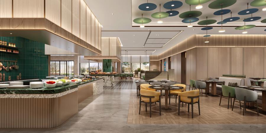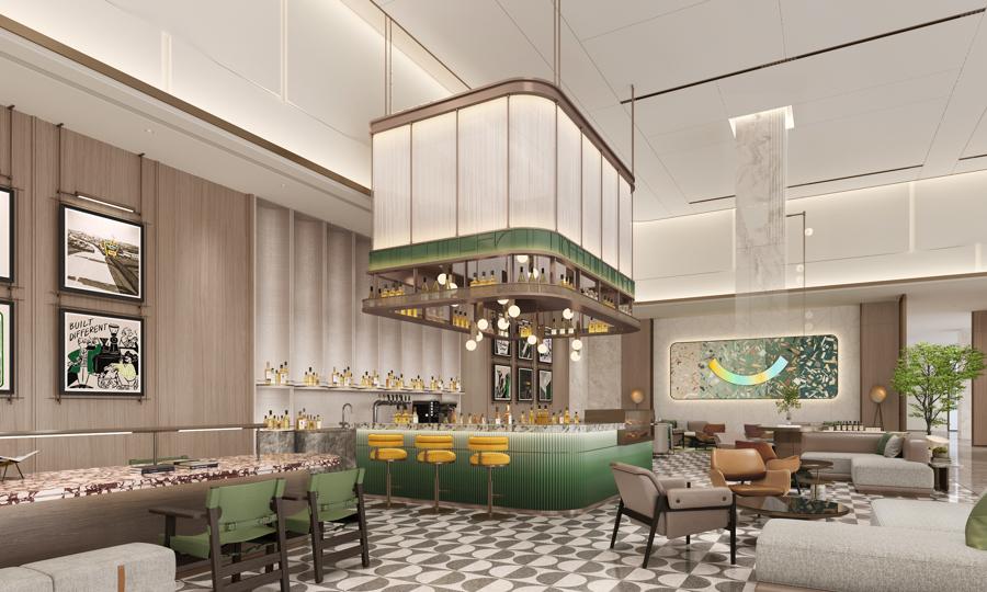 无论空间大小,“开放”永远是相对正确的做法。在3.0点亮版本中,空间布局采用中轴线、居中对称、层层递进的布局方式,让整体动线更清晰、开阔,也为宾客带来更加从容、舒适的体验。最简单的例子是当顾客走进酒店,首先映入眼帘、正对中轴线的核心区域,就是大堂主空间,这样的布局不仅在视觉上更直观,也符合旅客对品质与便捷的期待。