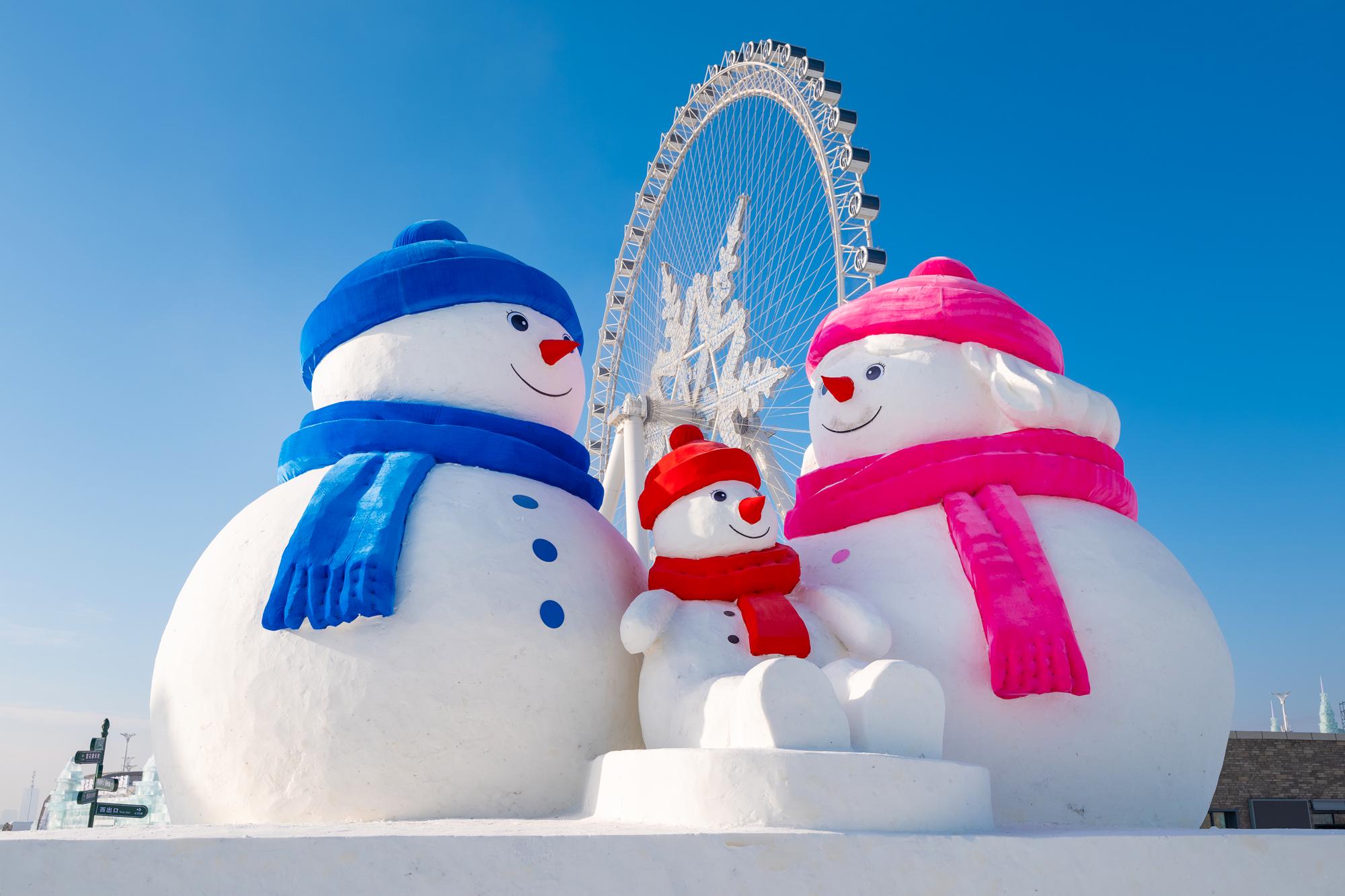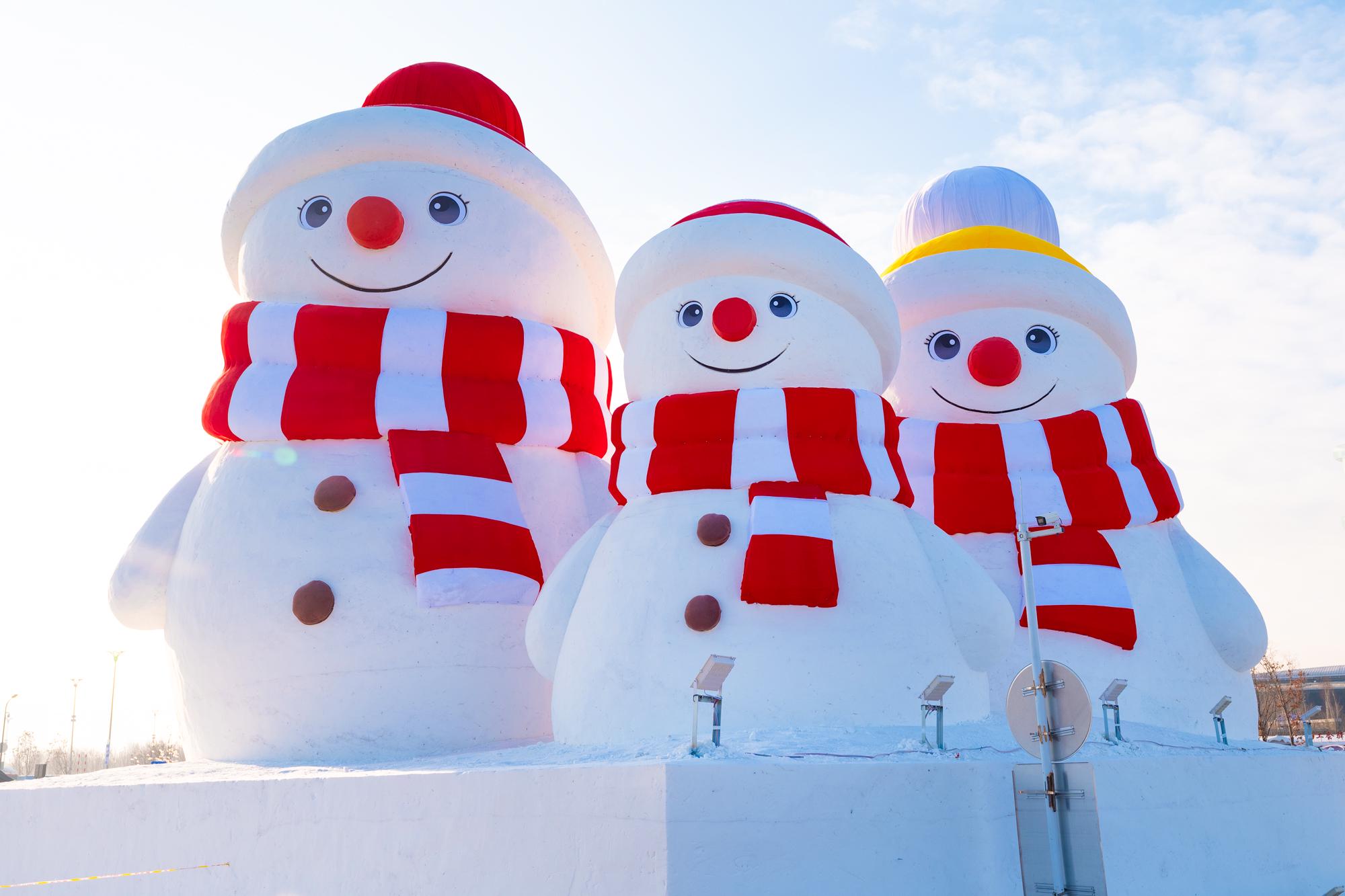 ↑2025年12月17日在黑龙江哈尔滨冰雪大世界园区内拍摄的雪人。CICPHOTO/耿洪杰 摄