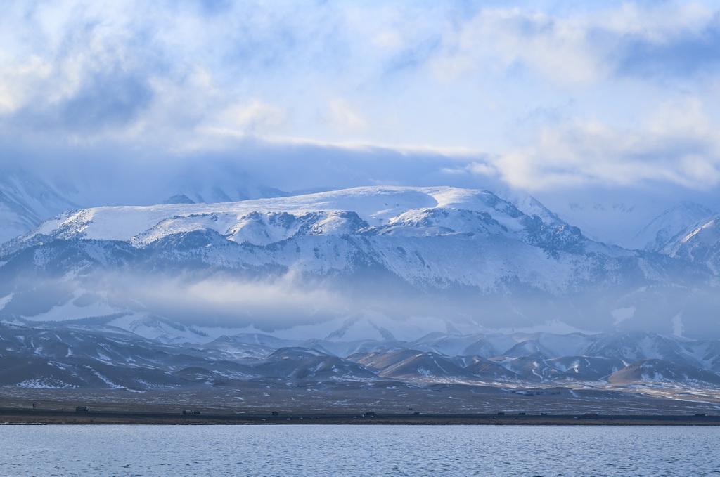 12月16日拍摄的赛里木湖和雪山。
