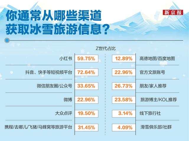 Z世代获取冰雪旅游信息的主要渠道。