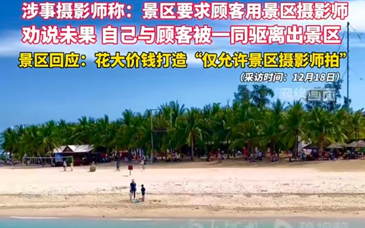 “我们买票上岛的为什么不能拍摄?”“游客不喜欢景区摄影师拍的风格,难道还不能找外面的人拍吗?”据大河报报道,12月17日下午,在三亚西岛景区海边,摄影师丁先生正按网约订单为游客提供旅拍服务。抵达海边拍摄点后,被几名景区工作人员和景区内摄影师围住阻拦拍照。对方表示:“你这是商业盈利拍摄,游客拍照只能用我们景区的摄影师,不行的话你们就出去。”